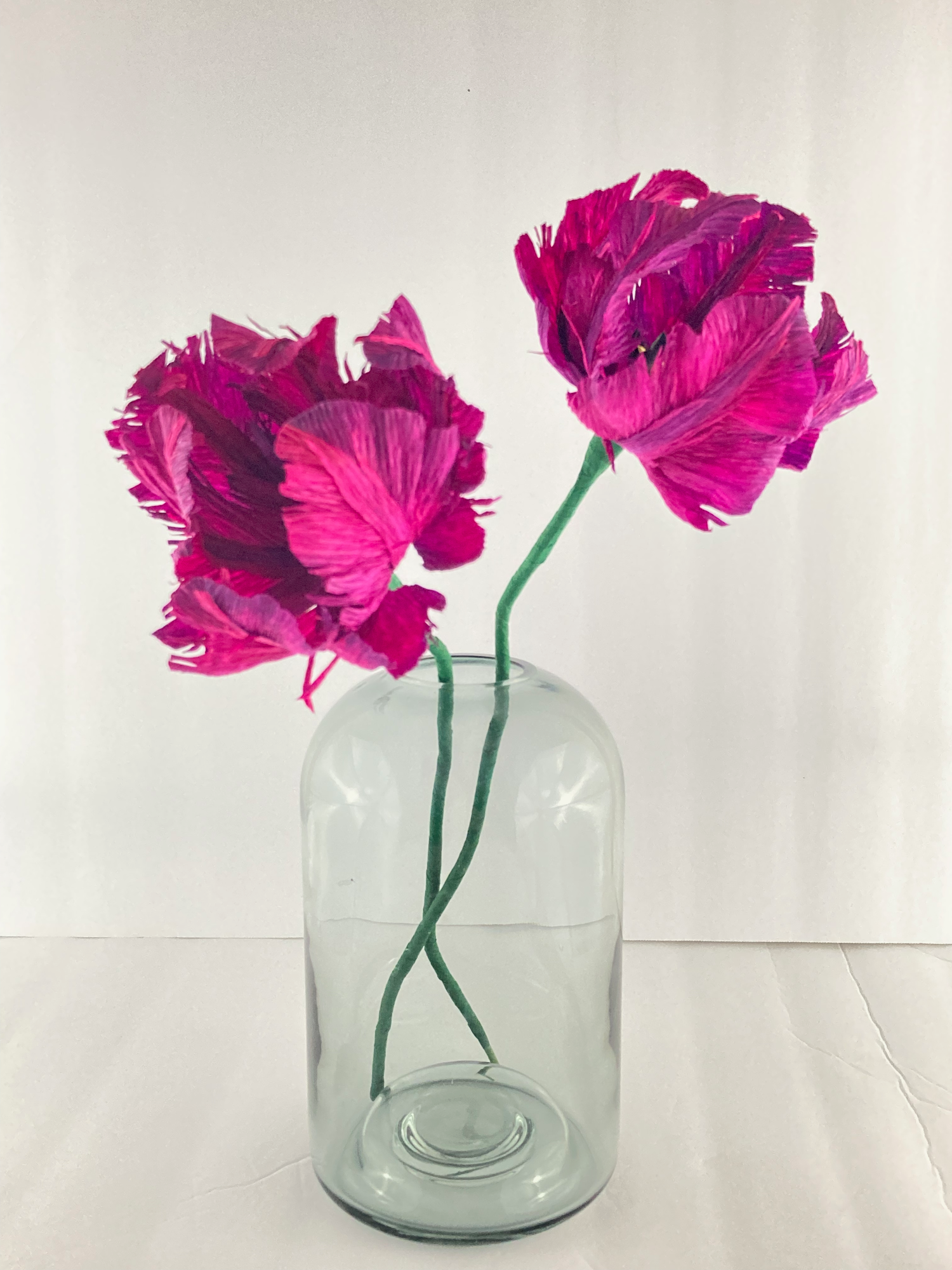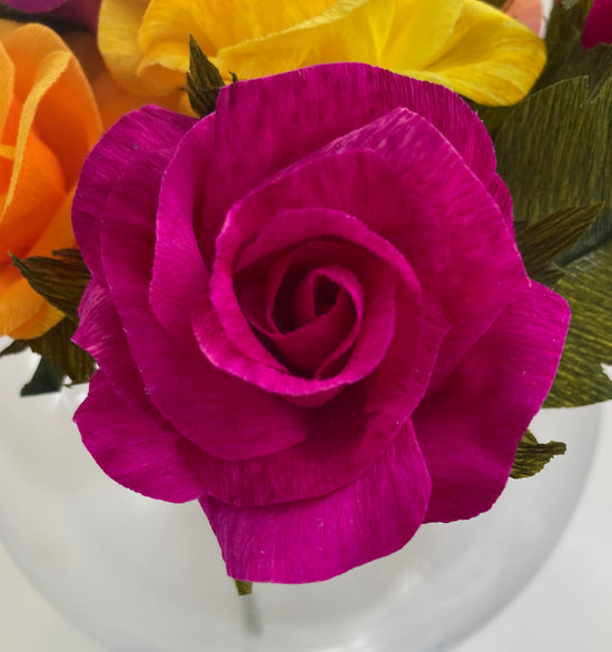 While timeless, each flower receives multiple touches through cutting, coloring, molding and the arrangement of the blooms. When finished, each art piece brings a burst of joy to the viewer.